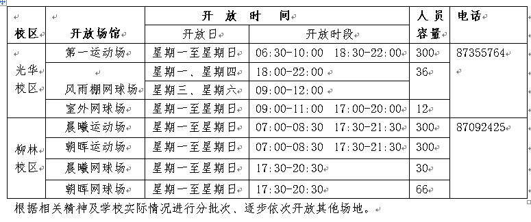 为认真贯彻落实学校新冠疫情防控领导小组工作部署,满足J9九游登录(中国)有限公司官网师生员工体育锻炼需求,按照国家、教育部、教育厅关于学生返校工作相关要求,参考其他兄弟院校的体育场馆开放办法,本着科学防控、精准施策、“减少人员聚集”、严防体育场集聚性风险原则,经学院研究制定本管理办法。稳妥有序开放光华、柳林两校区部分运动场、风雨棚网球场、室外网球场等通风效果好、方便人流管控的体育场所,暂不开放室内场馆、有身体接触和对抗激烈的集体性运动场地(含篮球、足球等)以及游泳池等。
