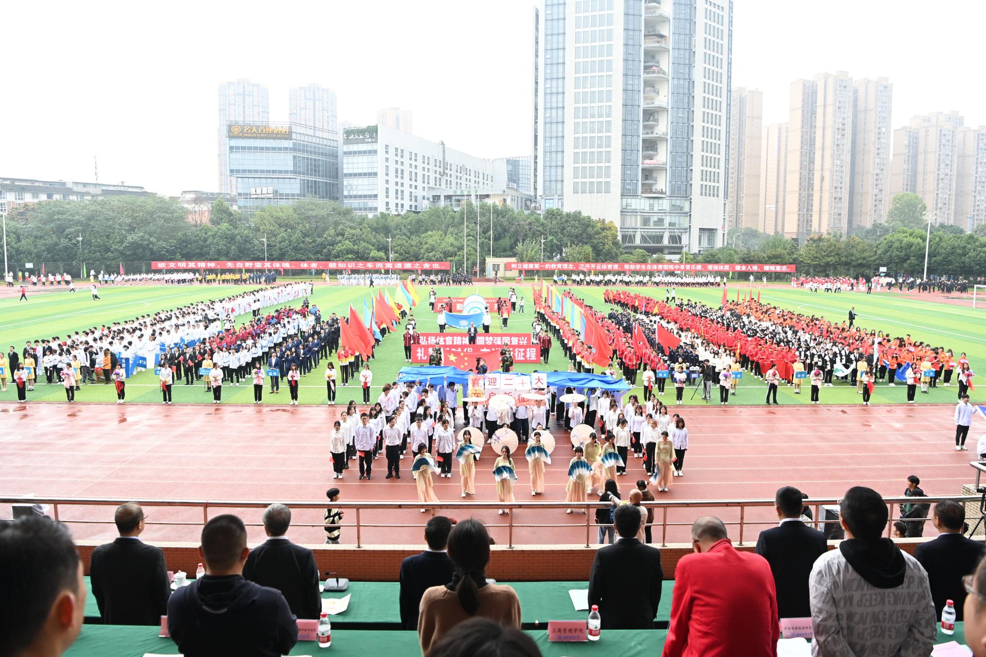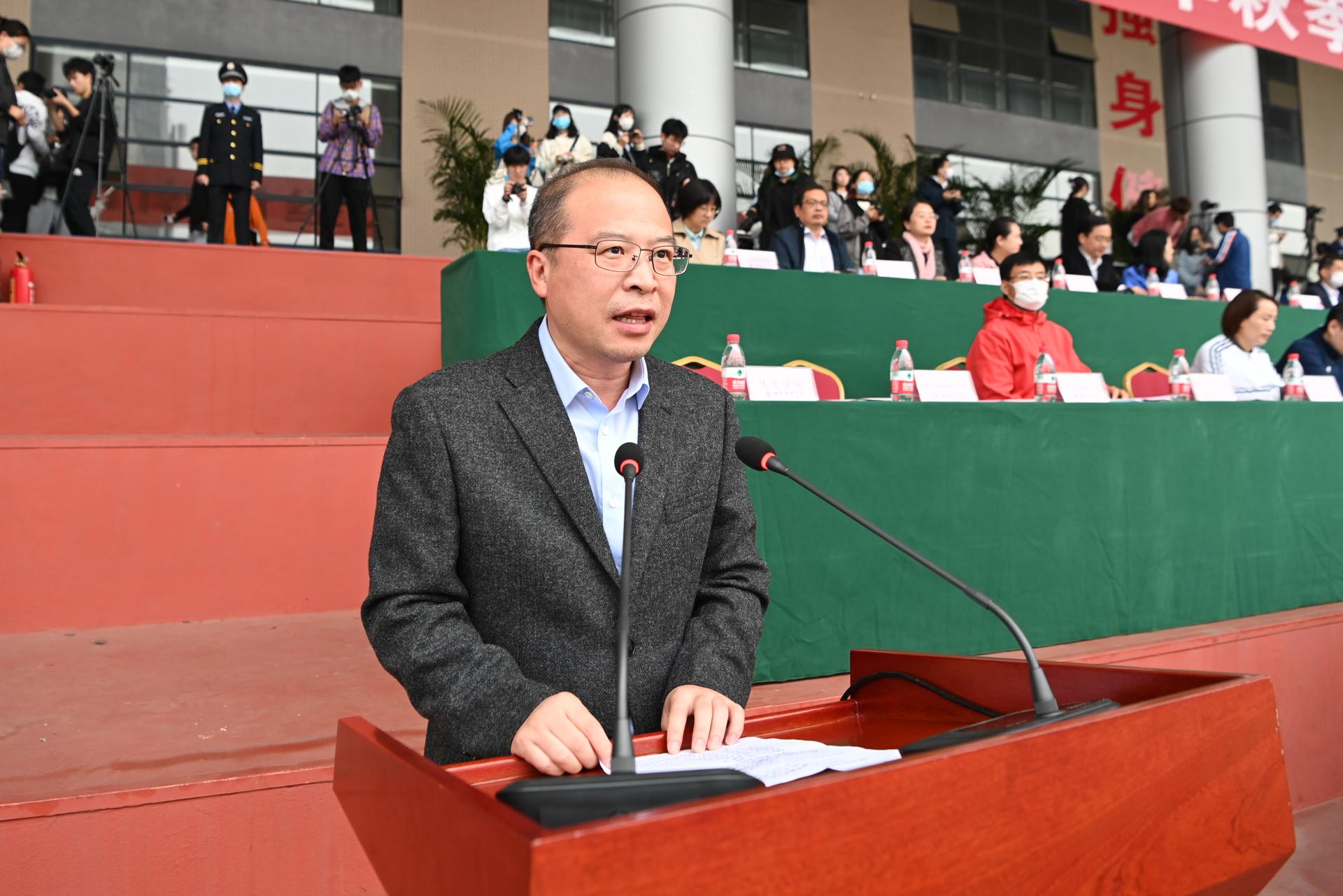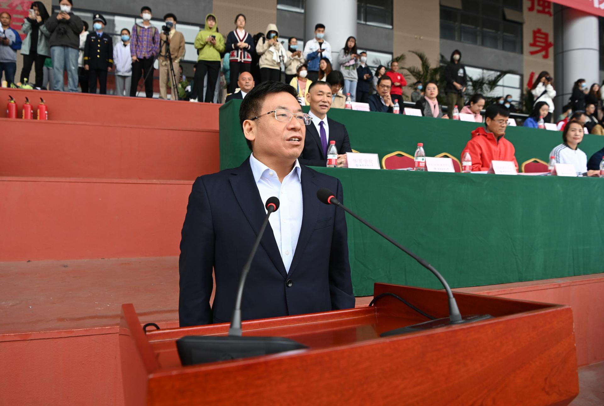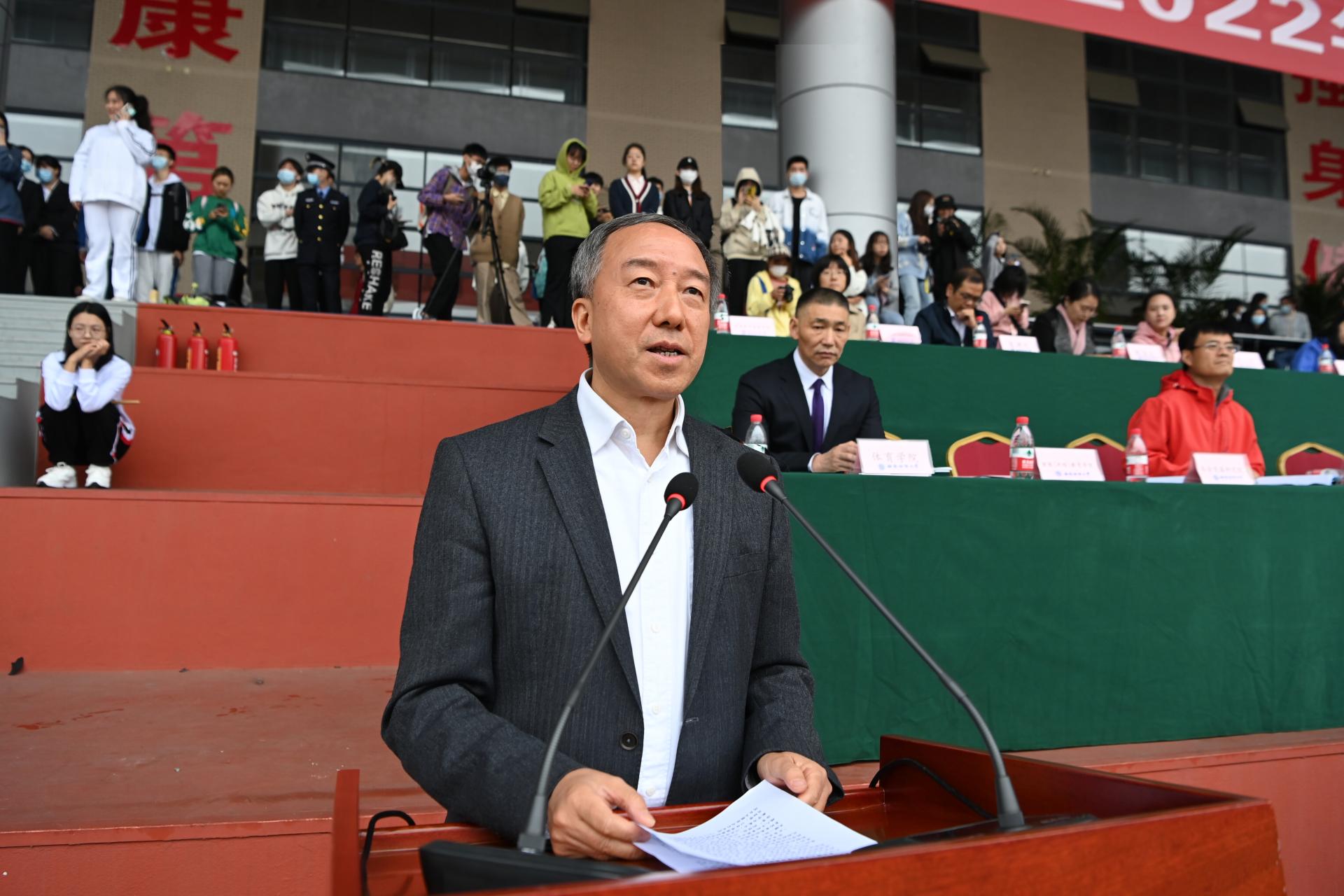 在全国上下深入学习宣传贯彻党的二十大精神之际,J9九游登录(中国)有限公司官网2022年秋季运动会积极响应习近平总书记在党的二十大报告中发出的“加快建设体育强国”总号召,以“礼赞新时代、奋进新征程,弘扬体育精神、圆梦强国复兴”为主题,于10月27-28日在柳林校区举行。学校党委书记赵德武,党委副书记、校长卓志,党委副书记马骁,党委副书记、副校长李永强,党委常委、副校长尹庆双、史代敏、张邦富、李志生,学院(研究院)和各职能部门负责人参加了开幕式。