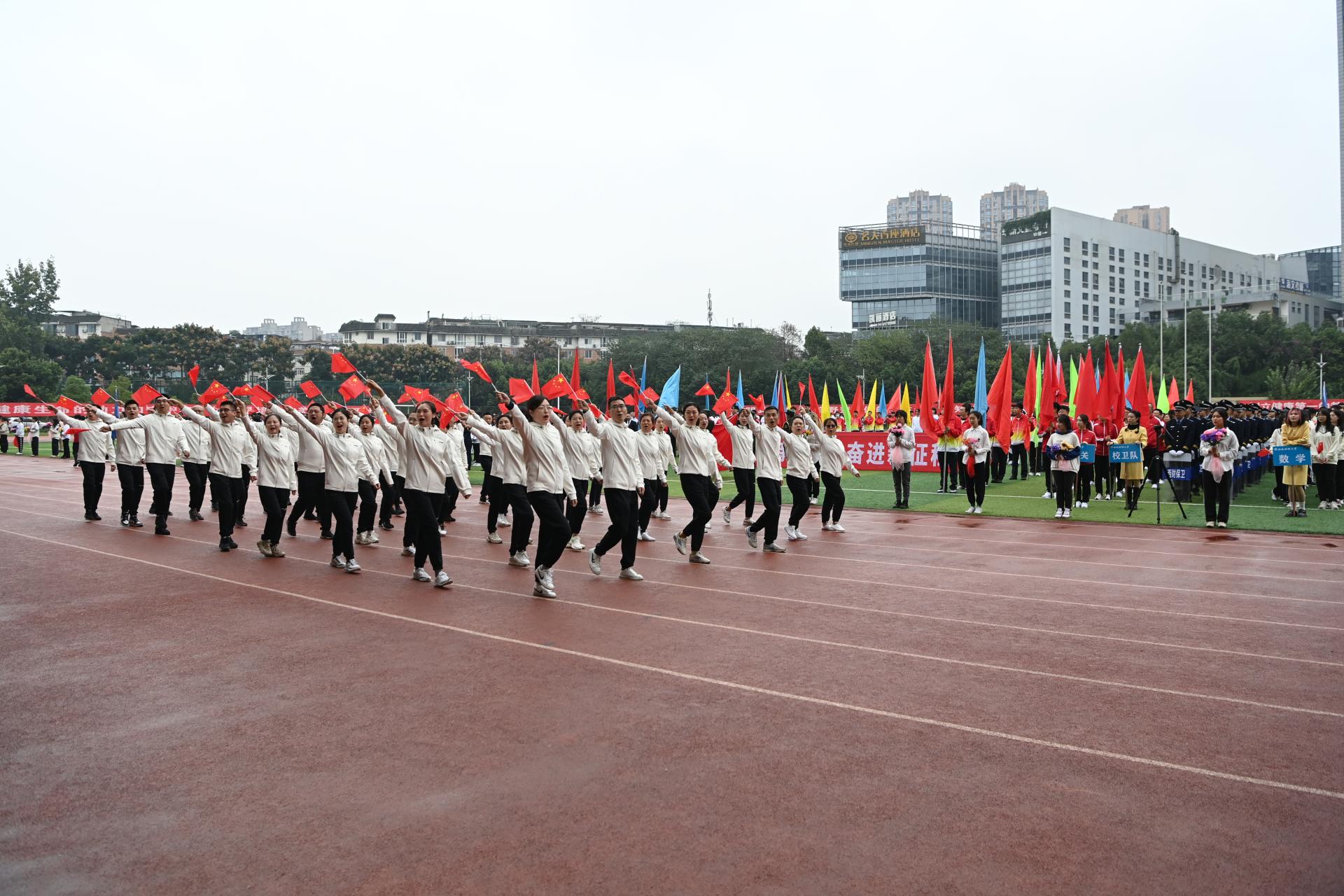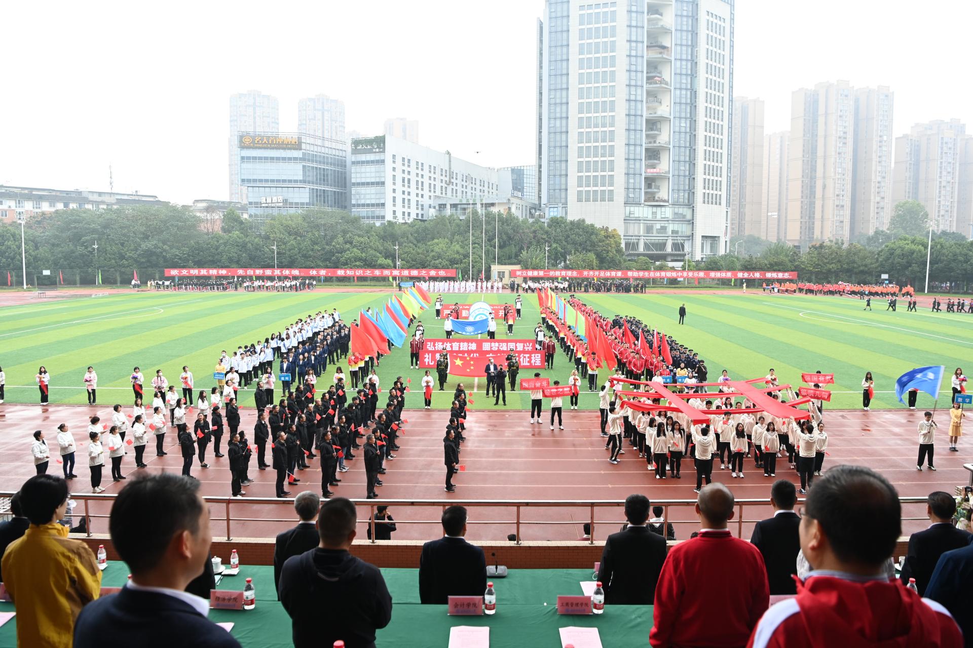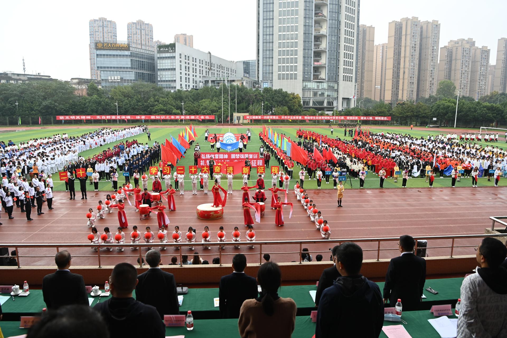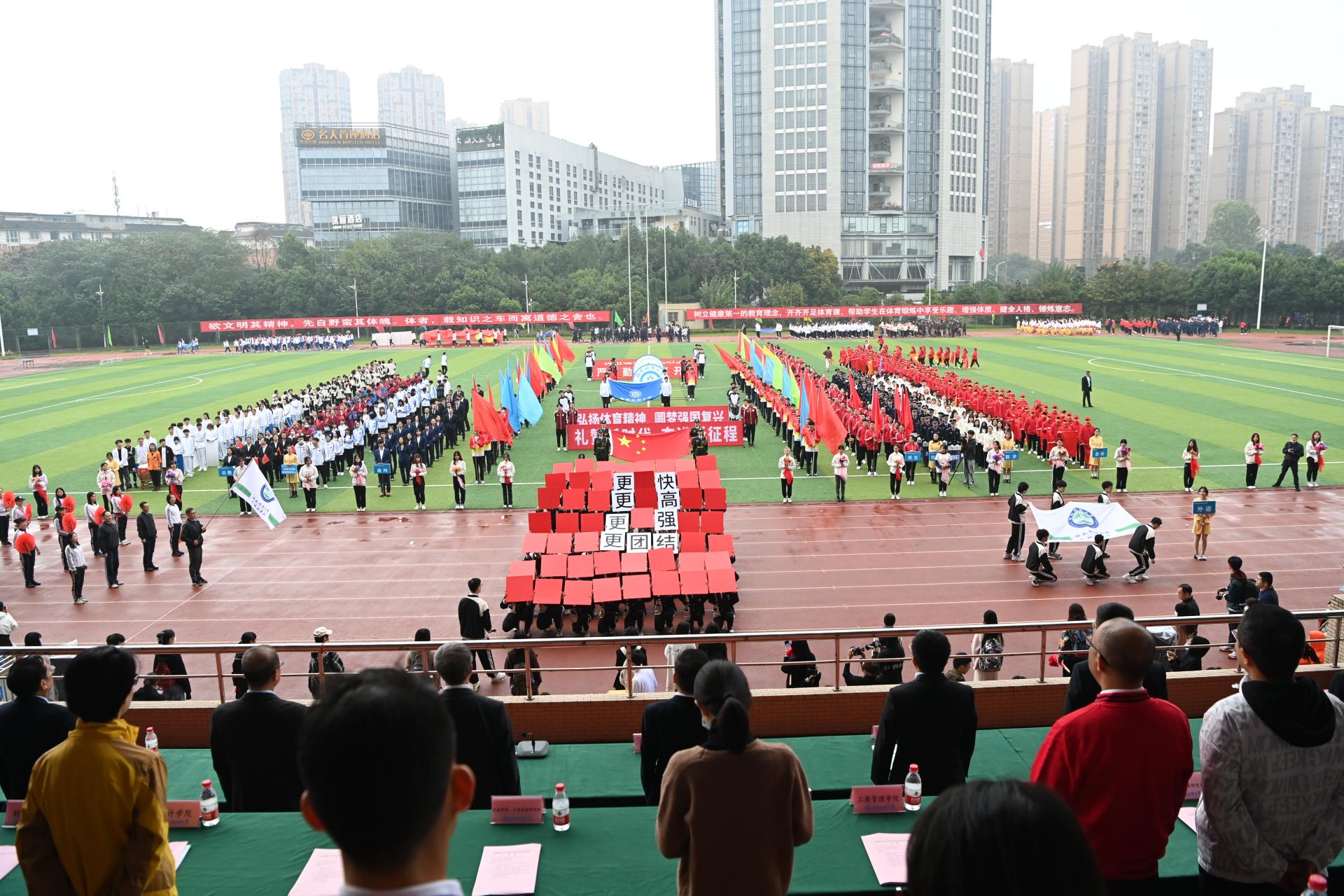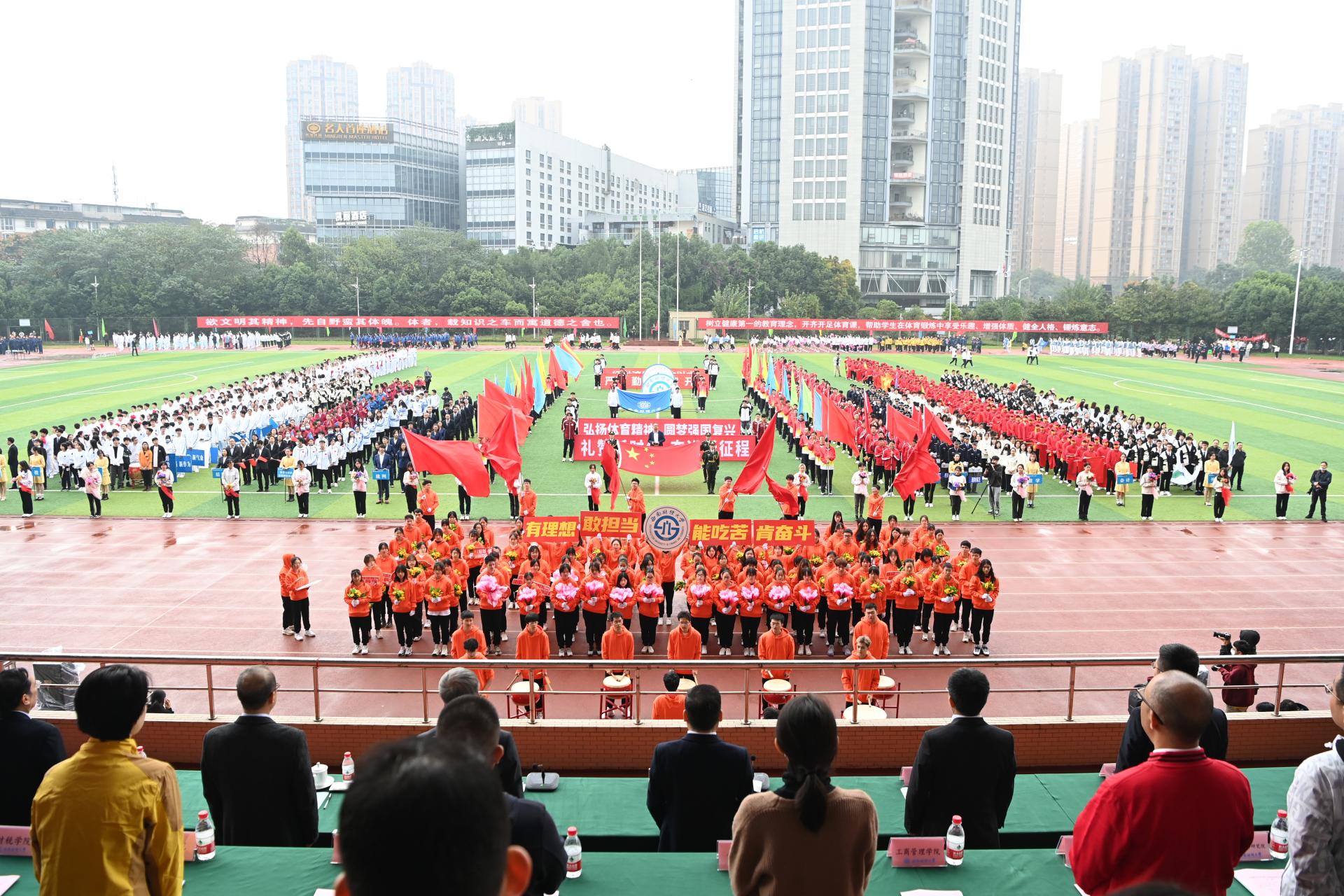 在全国上下深入学习宣传贯彻党的二十大精神之际,J9九游登录(中国)有限公司官网2022年秋季运动会积极响应习近平总书记在党的二十大报告中发出的“加快建设体育强国”总号召,以“礼赞新时代、奋进新征程,弘扬体育精神、圆梦强国复兴”为主题,于10月27-28日在柳林校区举行。学校党委书记赵德武,党委副书记、校长卓志,党委副书记马骁,党委副书记、副校长李永强,党委常委、副校长尹庆双、史代敏、张邦富、李志生,学院(研究院)和各职能部门负责人参加了开幕式。
