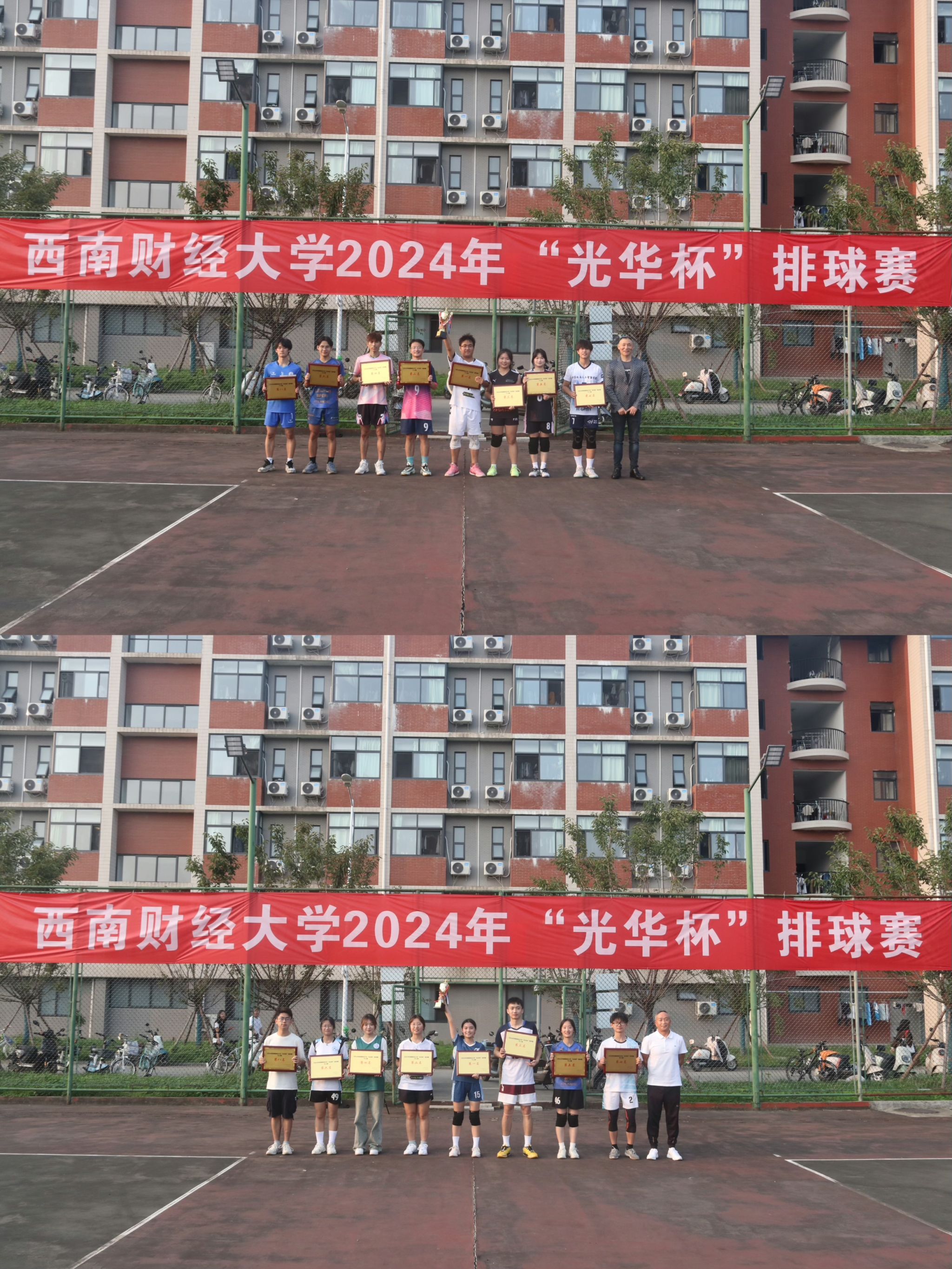 10月15日下午,“礼赞新时代·奋进新征程,迎百年校庆·铸西财辉煌”2024年西南财经大学 “光华杯”排球赛颁奖仪式在晨曦排球场举行。J9九游登录(中国)有限公司官网院长杨远波,党委书记周正宏,副院长阴涛、陈丛刊,副书记李治为获奖学院以及个人颁发了荣誉证书及奖牌。