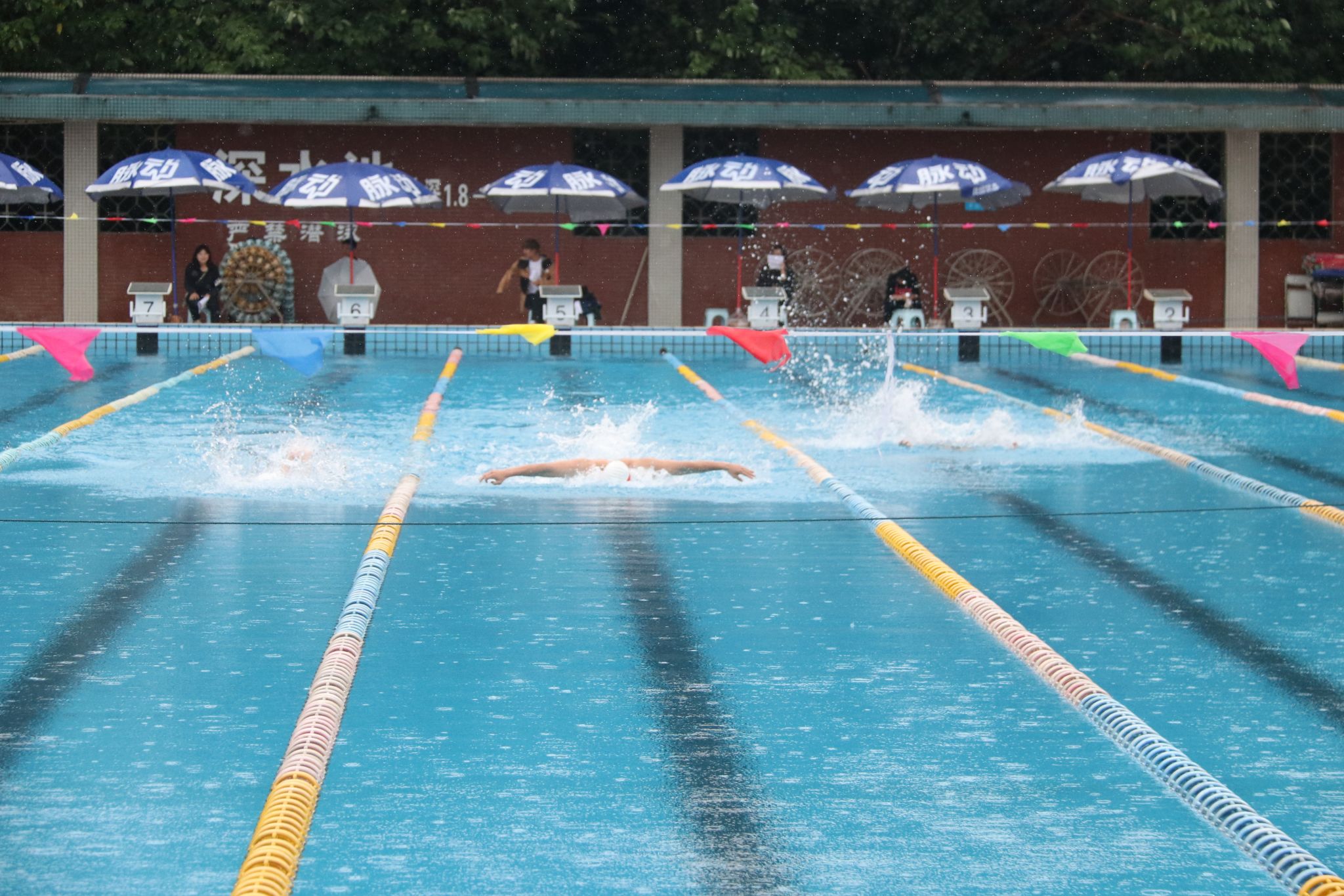 5月27日下午, 2025年“光华杯”游泳比赛于在柳林校区游泳池圆满举行。赛场上,选手们以矫健身姿劈波斩浪,用热血斗志为百年校庆献上活力四溢的水上华章。