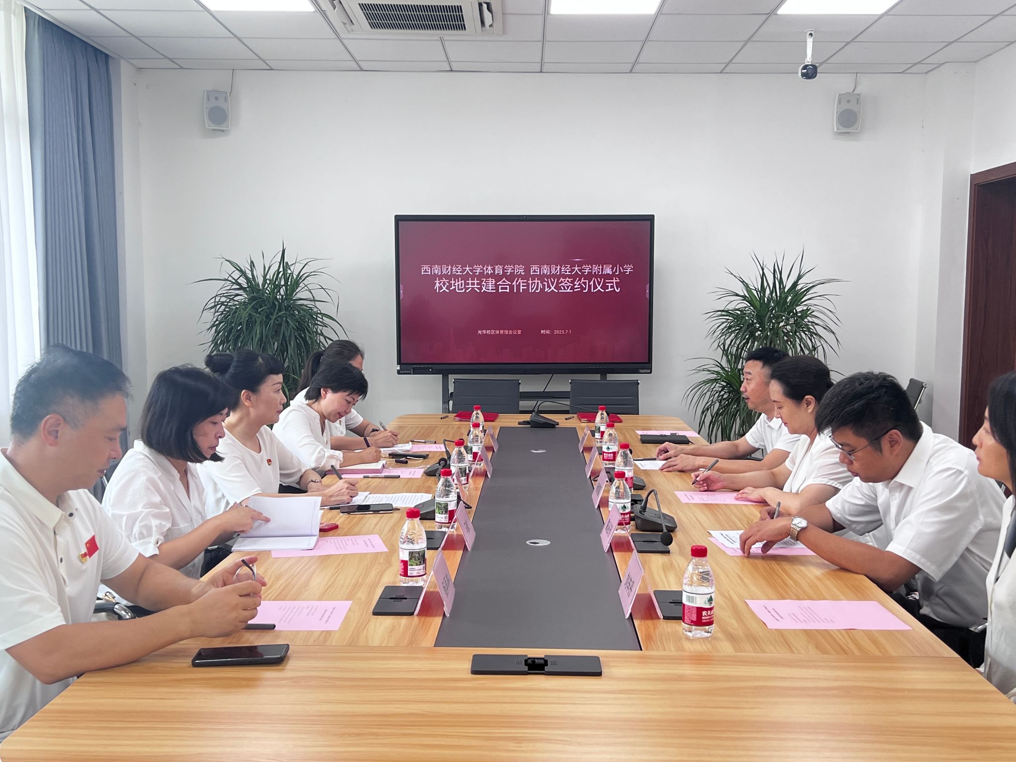 7月1日,西南财经大学J9九游登录(中国)有限公司官网与西南财经大学附属小学校地共建合作协议签约仪式在光华校庆体育馆会议室举行。西南财经大学附属小学党支部书记、校长张幼玲,专职副书记罗乔、副校长马毅;西南财经大学校工会常务副主席杨熳霞,J9九游登录(中国)有限公司官网副院长(主持工作)陈丛刊,党委副书记、纪委书记李治等出席签约仪式。签约仪式由李治主持。
