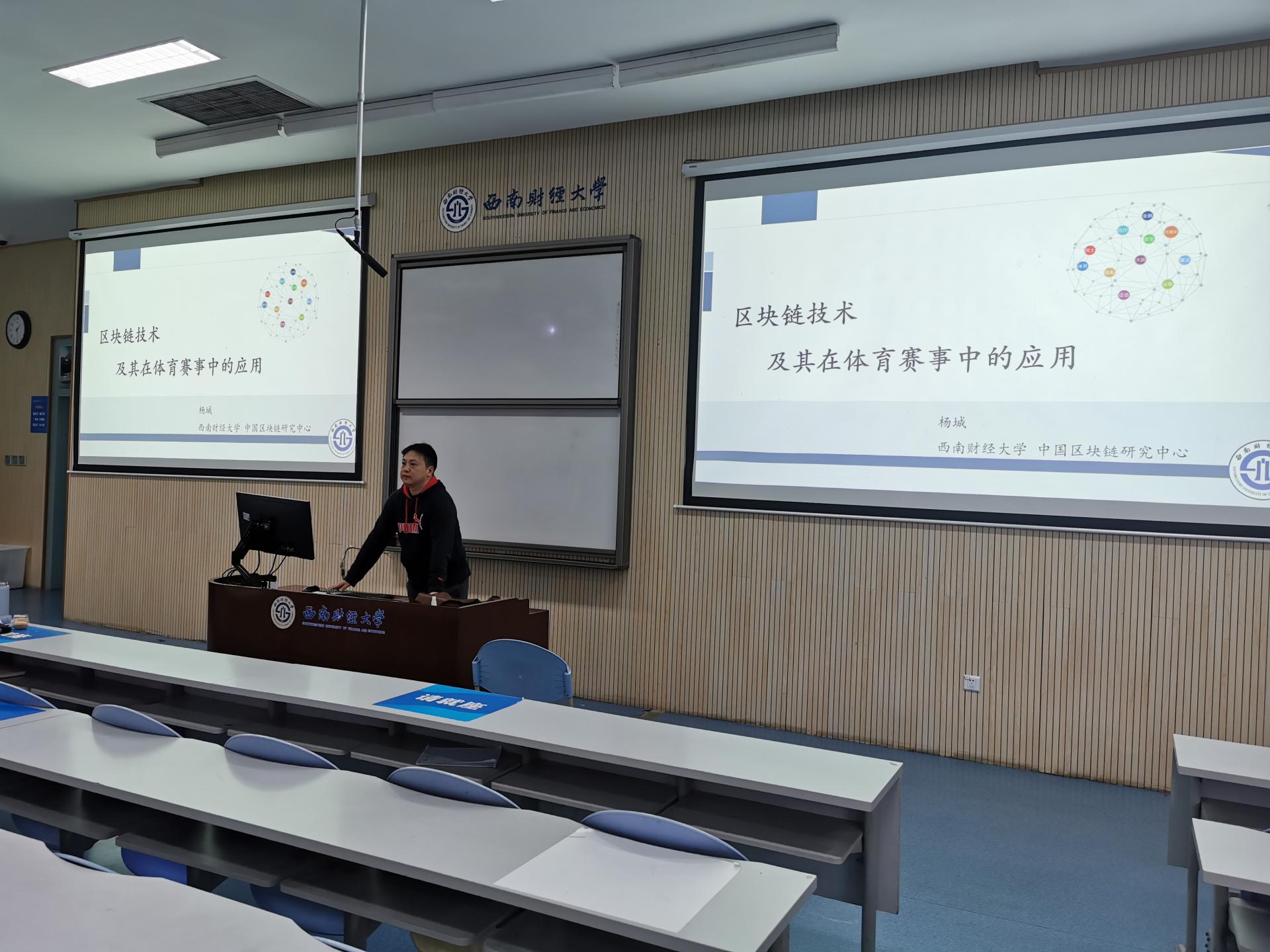 10月9日晚,西南财经大学区块链研究中心、经济信息学院副教授,计算机应用专业博士、美国德州理工大学访问学者杨城老师在光华校区明德楼201教室举办了题为《区块链技术及其在体育赛事中的应用》的光华讲坛。黄道名教授主持本次讲座,J9九游登录(中国)有限公司官网、经济信息学院部分师生参加。