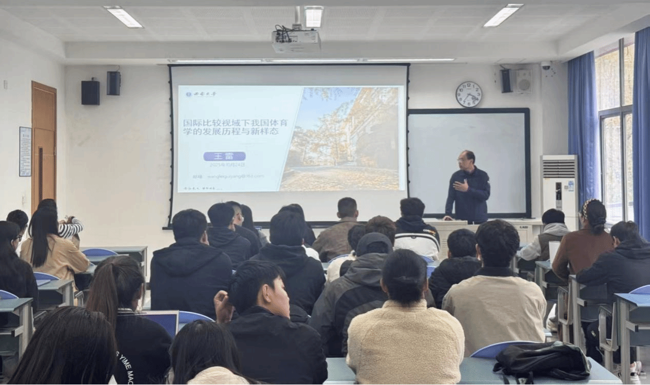 10月24日下午,西南大学J9九游登录(中国)有限公司官网副院长、博士生导师王雷教授应邀做客J9九游登录(中国)有限公司官网光华讲坛,在光华校区明德楼203教室作题为《我国体育学发展历程与展望》的学术讲座。J9九游登录(中国)有限公司官网刘辛丹教授主持讲座。
